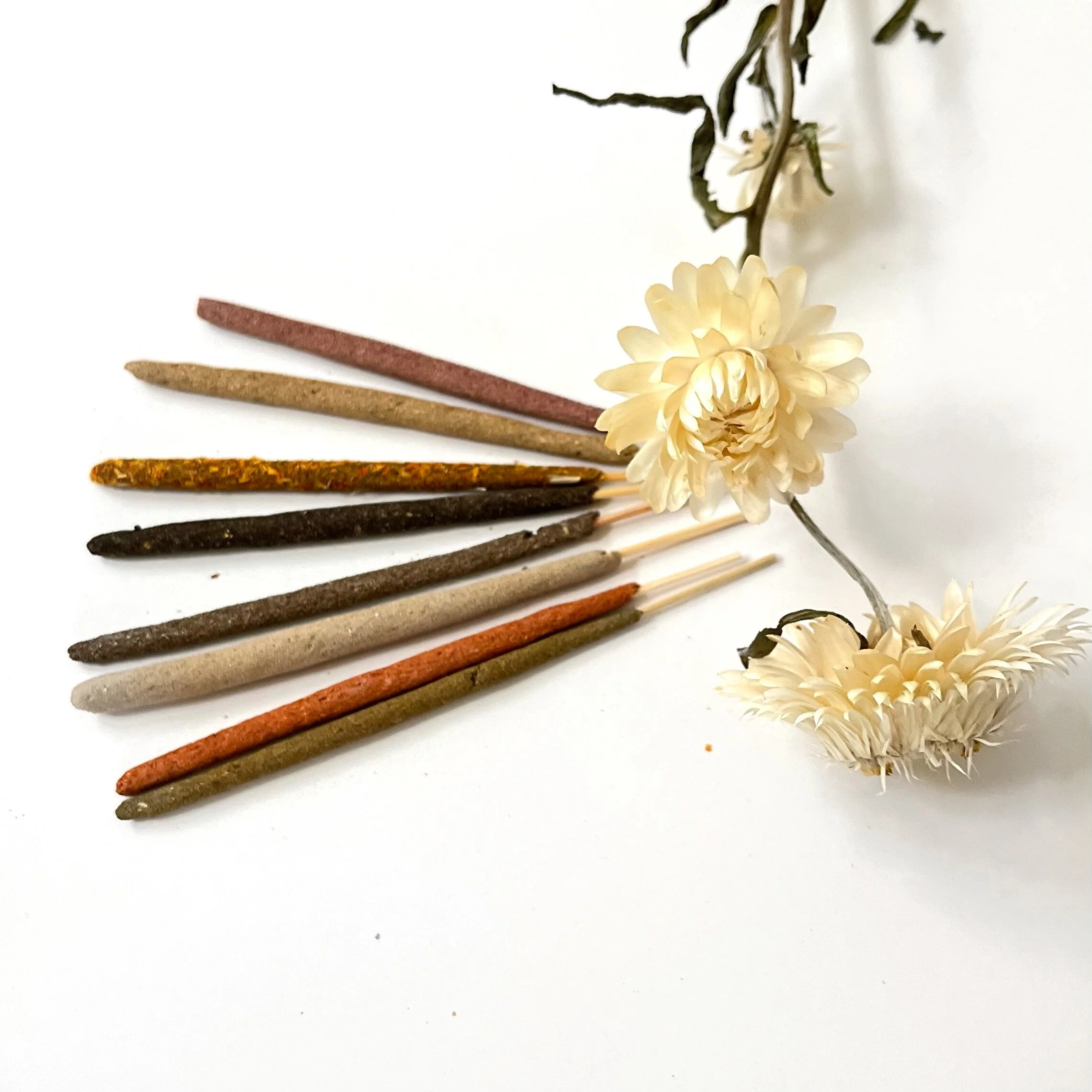 Ancestor is made with two human hands and 100% botanical ingredients. Blends are forged from from flowers, resins, barks and herbs - thoughtfully sourced, homegrown or wildcrafted - that are thoughtfully researched and sourced. Each stick of incense is a harmony of earthen aromatics intended to connect us to the Earth, the Heavens, and one another.